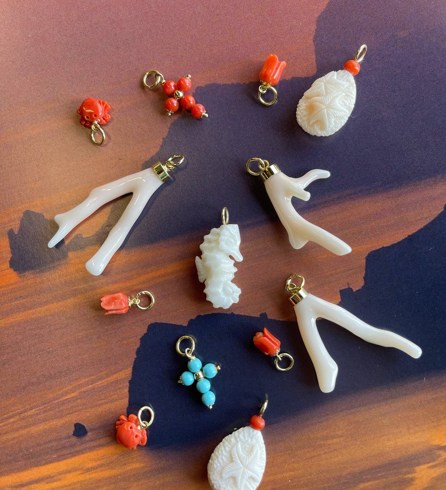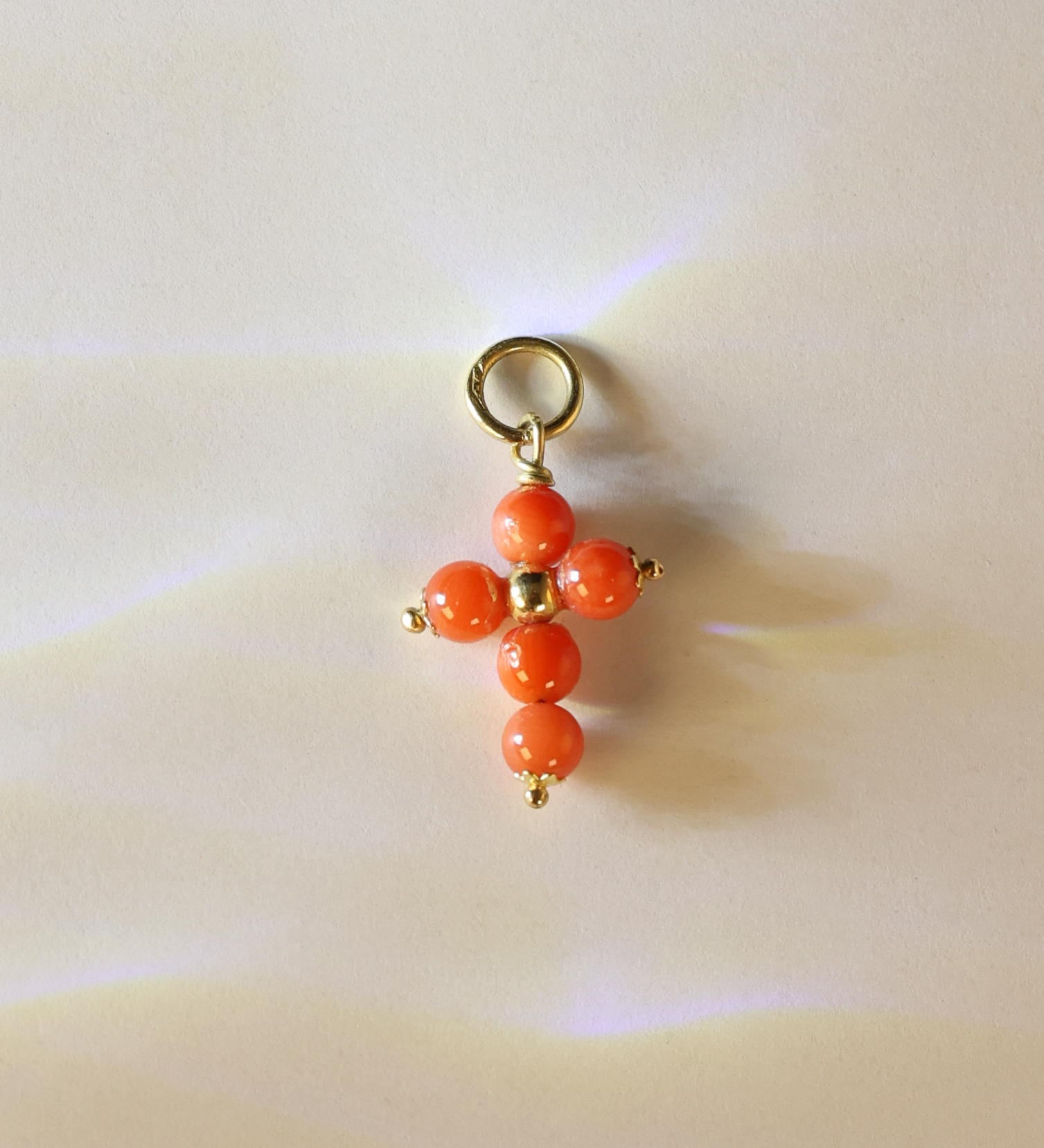 Coral Cross Pendant 18K
