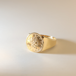 The Vintage Coin ring is made of 9k gold and has a classic and timeless image on the top. The broad shoulders make the ring that cool badass ring for every day!