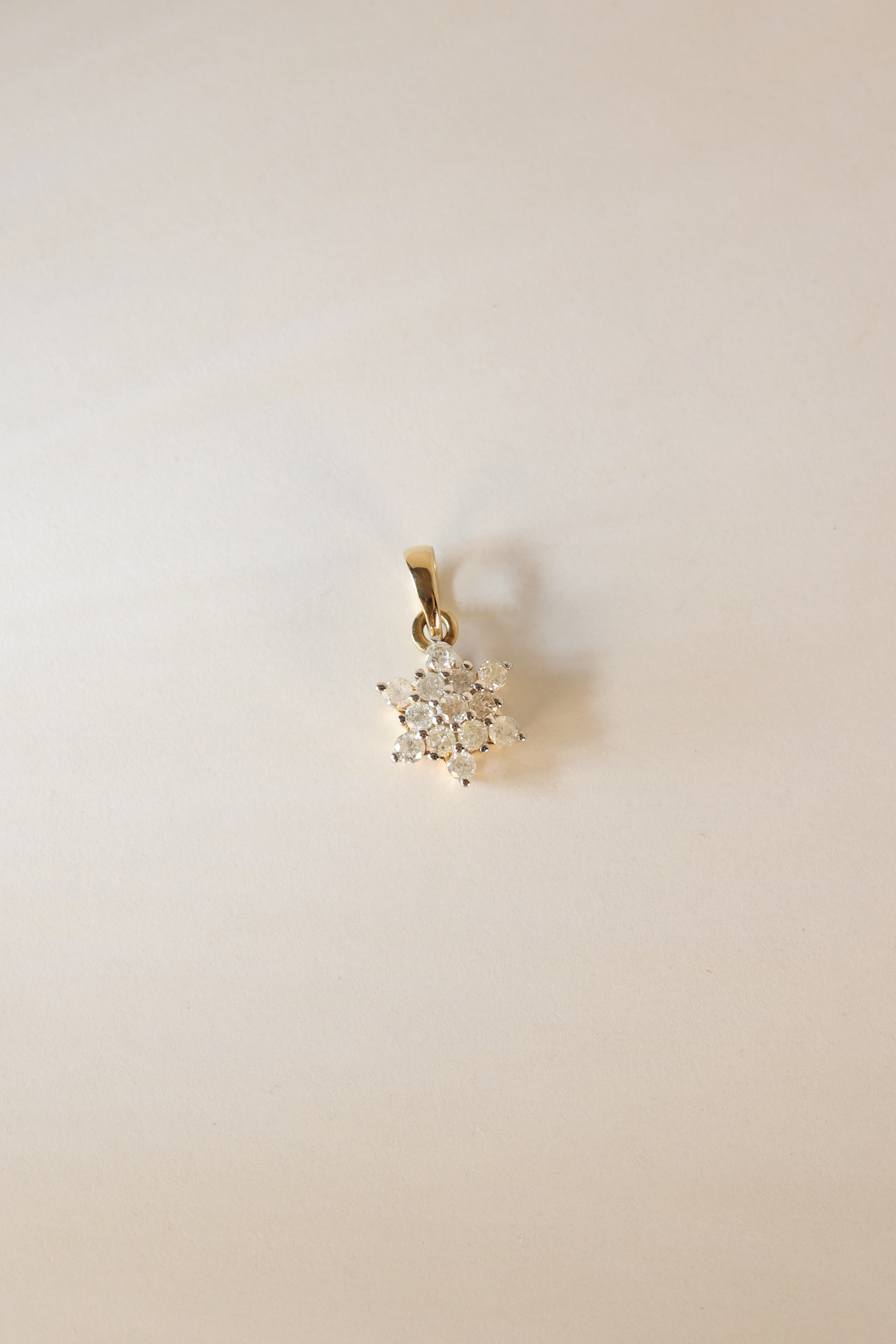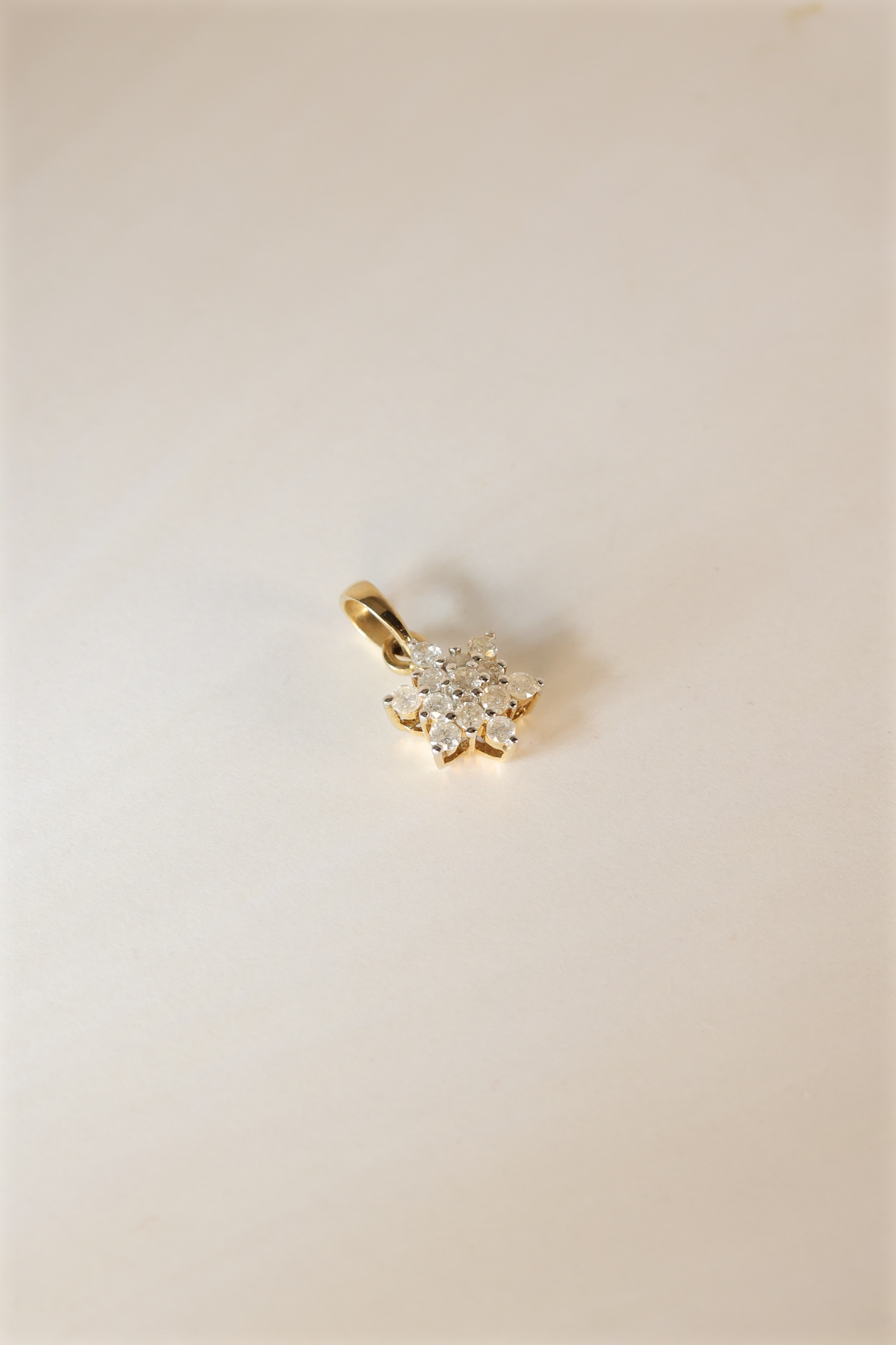 Laat je betoveren door de sprankelende elegantie van onze Vintage Diamond Star Pendant in 10K. De fonkelende diamanten vormen samen een sierlijke ster, waardoor het hangertje een opvallende maar verfijnde uitstraling krijgt. In combinatie met de warme glans van 10K straalt dit stuk een tijdloze charme uit die elke outfit naar een hoger niveau tilt. Ideaal om solo te dragen als subtiel statement, maar ook prachtig te combineren met andere kettingen voor een gelaagde, stijlvolle look. Een betoverend vintage juweel dat luxe, karakter en schittering moeiteloos samenbrengt.