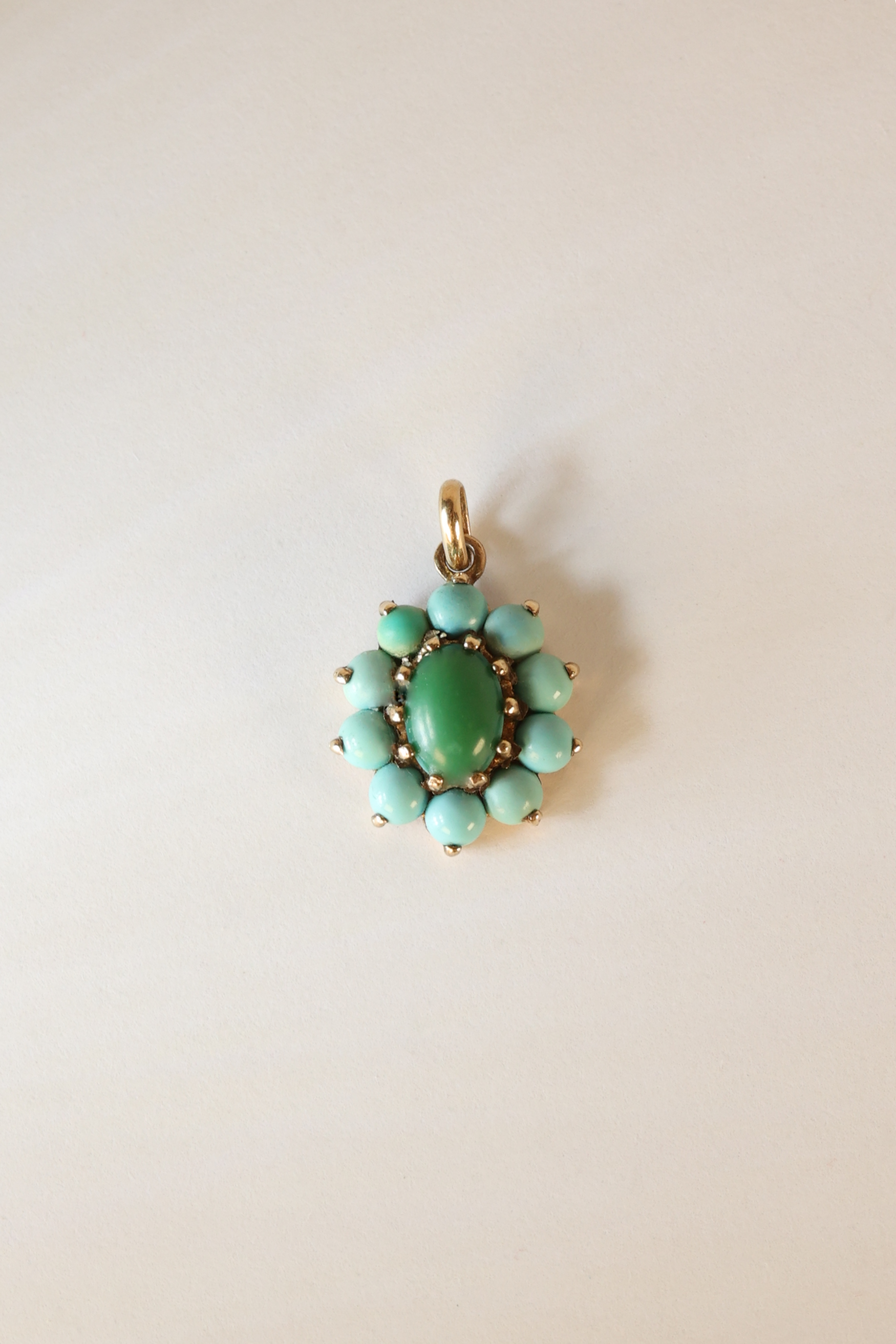 Vintage Turquoise Flower Charm 9K