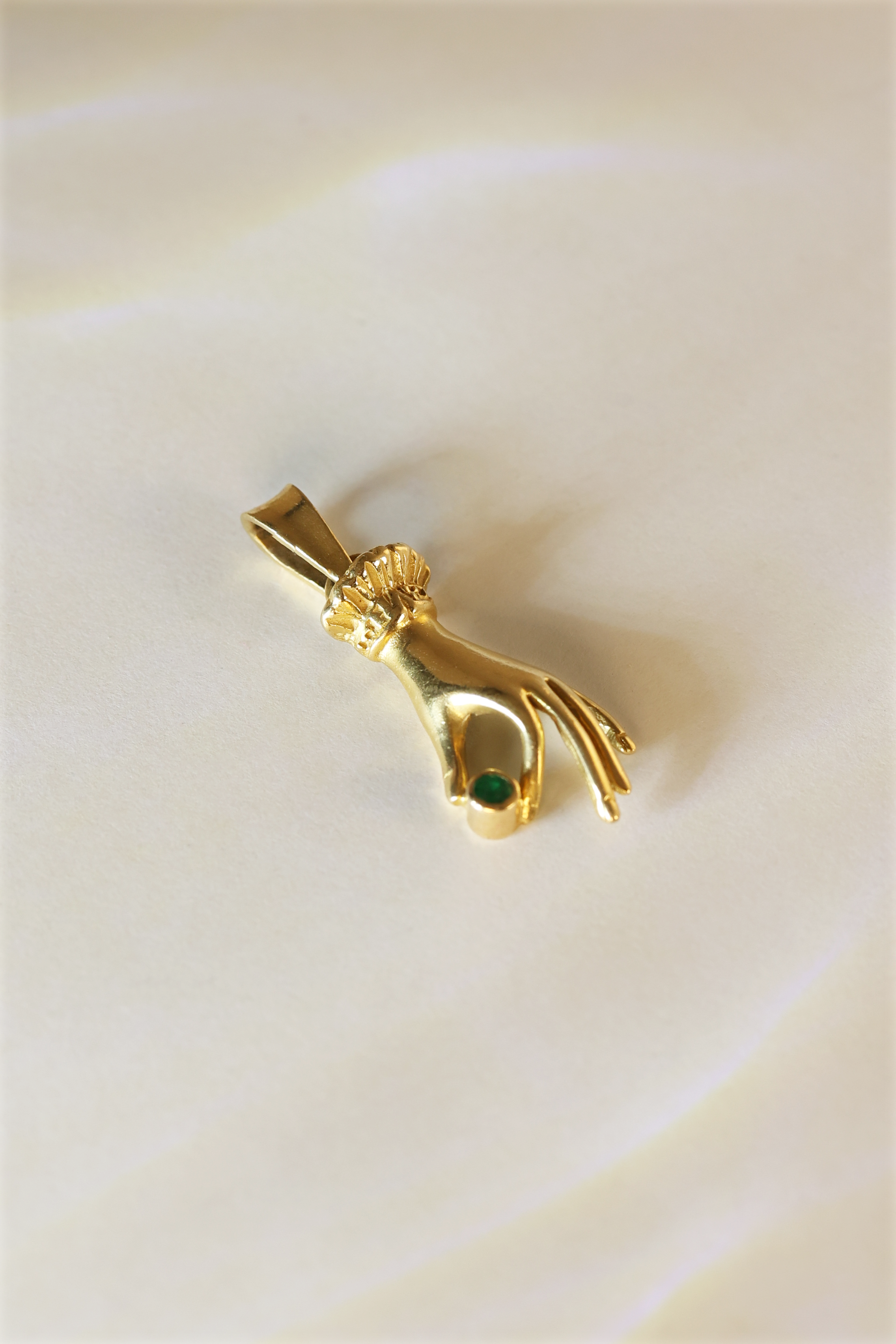 Ontdek de betovering van het Victoriaanse tijdperk met onze Vintage Victorian Hand Emerald Pendant 18K! Dit prachtige sieraad is een eerbetoon aan de elegantie en verfijning van die tijd. Met zijn in de hand gezette smaragden steen en verfijnde 18-karaats gouden details straalt deze hanger een tijdloze schoonheid uit. Voeg een vleugje historische charme toe aan je outfit en laat je stijl sprankelen met deze unieke pendant!
